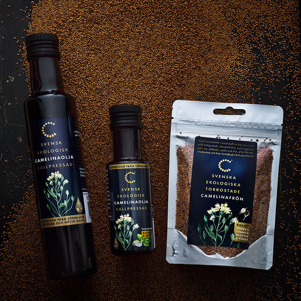 Camelina är en svensk, ekologisk oljeväxt som vi återinförde när ingen längre odlade den i Sverige.